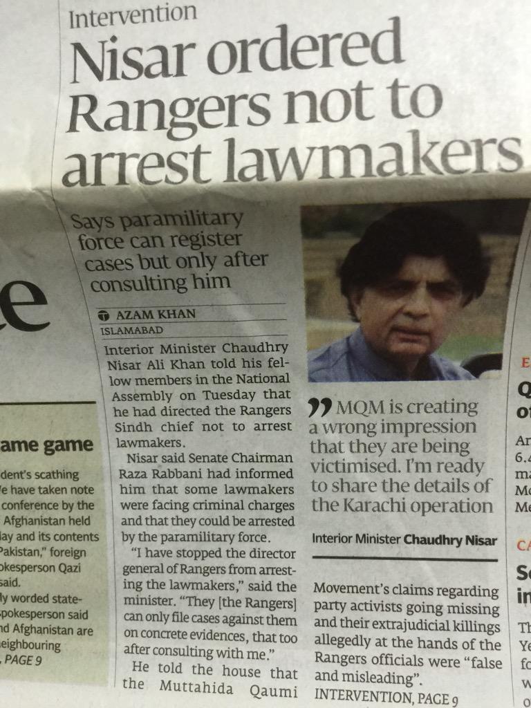 succumb to dictates of Ch Nisar NOT to arrest lawmakers involved in criminal acts?
