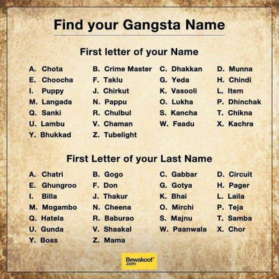 I am MUNNA CIRCUIT ...what's your Gangsta name ???