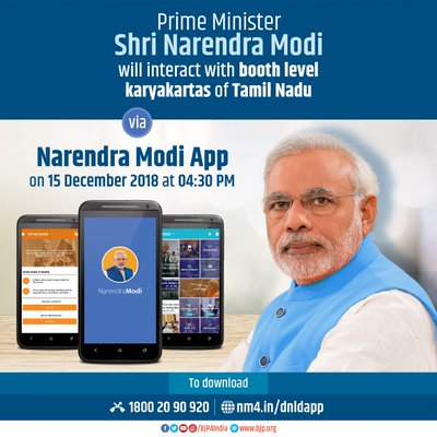 Prime Minister Shri @narendramodi will interact with booth level karyakartas of @BJP4TamilNadu at 4.30 pm today. Watch LIVE at 'Narendra Modi app' and @BJP4India's social media platforms.