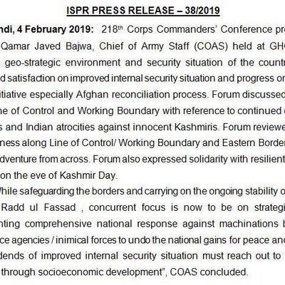 CCC. "While safeguarding bdrs & Op RuF, concurrent focus is now to be on strategising & implementing comprehensive national response against machinations by hostile intelligence agencies/ inimical forces to undo the National gains for peace and stability", COAS. (2 of 2).