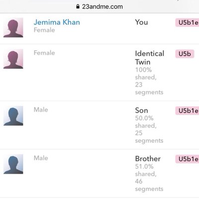 1) According to 23&me, I have an identical twin- photo below. My family is sufficiently "complicated" for me to think that this was an actual possibility & my Mum's response ("I don't THINK so darling") was not reassuring. https://t.co/134WScfuxSRabi